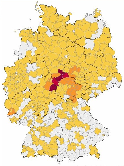 Der Name Apel tritt in Deutschland sehr häufig auf, wie man auf der Kartierung erkennen kann.