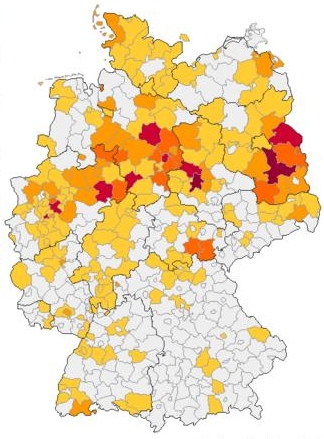 Der Name Balke tritt in Deutschland sehr oft auf, wie man auf der Kartierung erkennen kann.