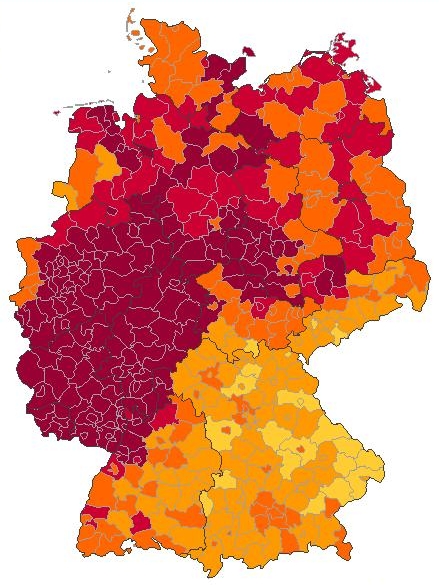 Der Name Becker tritt in Deutschland sehr häufig auf, wie man auf der Kartierung erkennen kann.