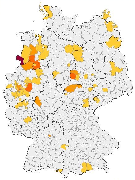 Der Name Bergfeld tritt in Deutschland häufig auf, wie man auf der Kartierung erkennen kann.
