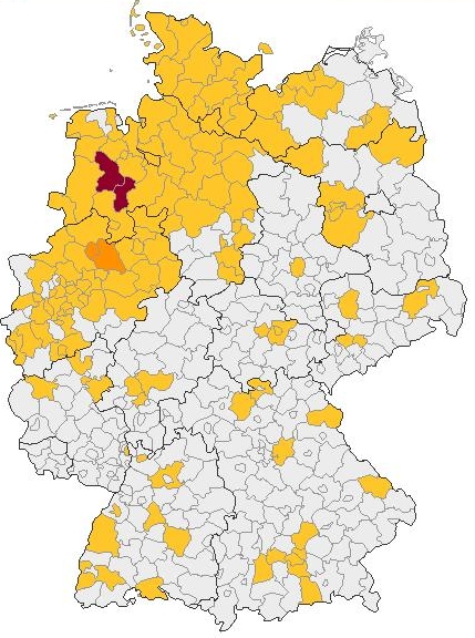 Der Name Böckmann tritt in Deutschland häufig auf, wie man auf der Kartierung erkennen kann.