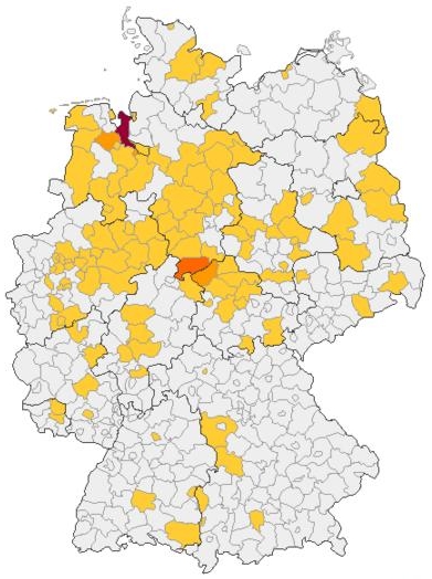 Der Name Böning tritt in Deutschland sehr häufig auf, wie man auf der Kartierung erkennen kann.