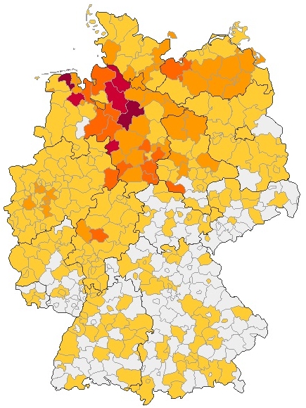 Der Name Bremer tritt in Deutschland sehr häufig auf, wie man auf der Kartierung erkennen kann.