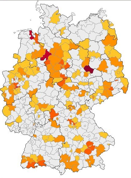 Der Name Bürgel tritt in Deutschland häufig auf, wie man auf der Kartierung sehen kann.