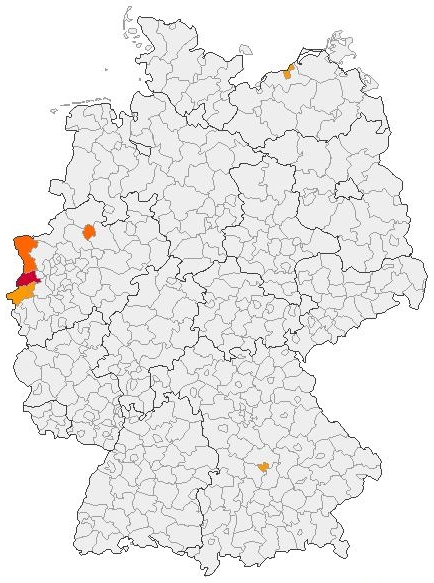 Der Name Camps tritt in Deutschland nicht sehr häufig auf, wie man auf der Kartierung erkennen kann.