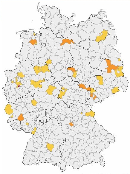 Der Name Deus tritt in Deutschland nicht sehr häufig auf, wie man auf der Kartierung erkennen kann.