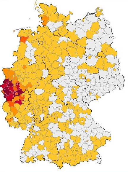 Der Name Engels tritt in Deutschland sehr häufig auf, wie man auf der Kartierung erkennen kann.