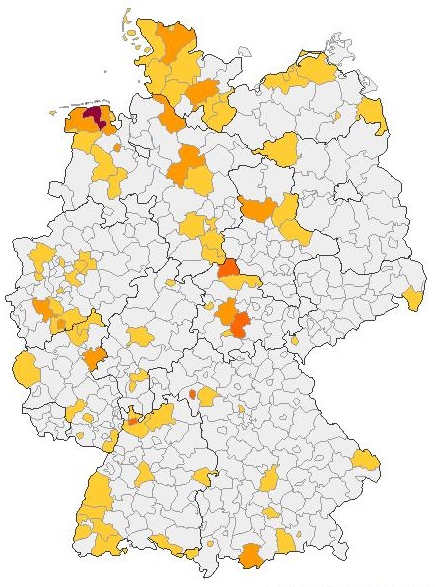 Der Name Fabricius tritt in Deutschland häufig auf, wie man auf der Kartierung erkennen kann.