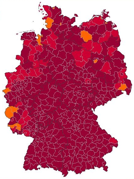 Der Name Fischer tritt in Deutschland sehr häufig auf, wie man auf der Kartierung erkennen kann.