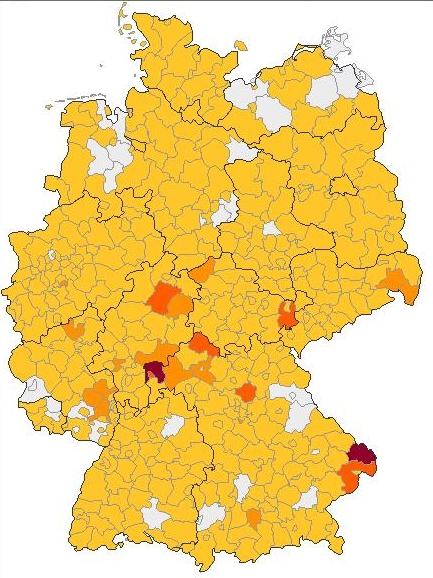 Der Name Freund tritt in Deutschland sehr häufig auf, wie man auf der Kartierung erkennen kann.