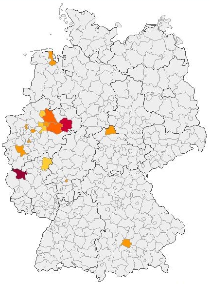Der Name Füser tritt in Deutschland nicht häufig auf, wie man auf der Kartierung erkennen kann.