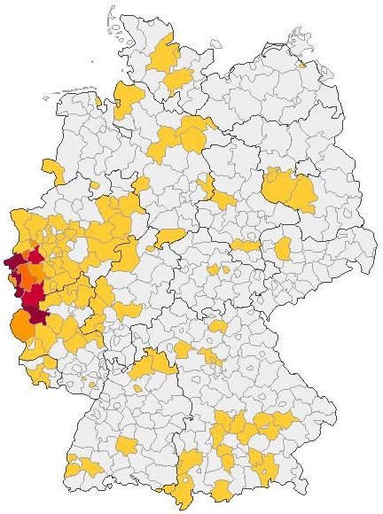 Der Name Hilgers tritt in Deutschland häufig auf, wie man auf der Kartierung erkennen kann.