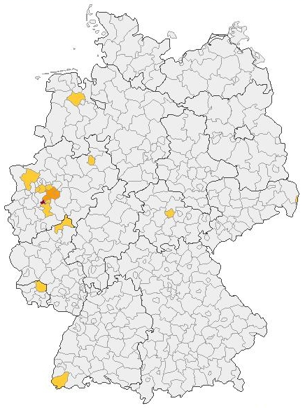 Der Name Hölterhoff tritt in Deutschland selten auf, wie man auf der Kartierung erkennen kann.