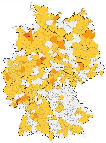 Der Name Kayser tritt in Deutschland sehr häufig auf, wie man auf der Kartierung erkennen kann.
