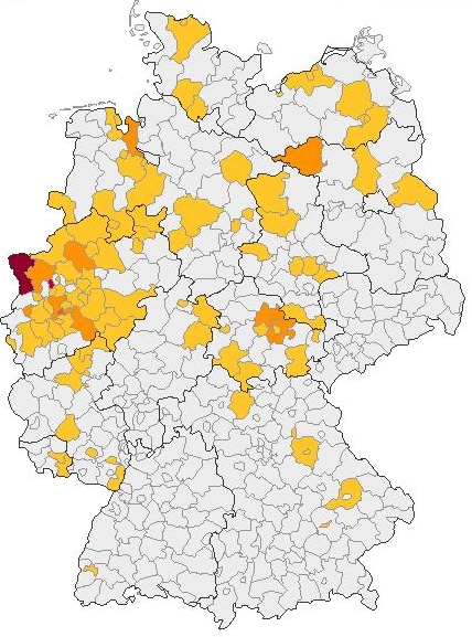 Der Name Langenberg tritt in Deutschland oft auf, wie man auf der Kartierung erkennen kann.