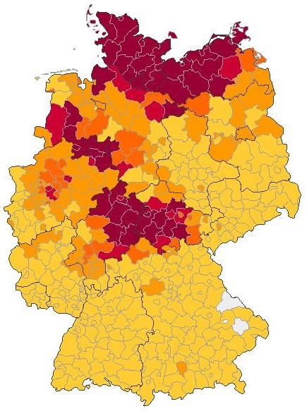 Der Name Möller ist in Deutschland sehr häufig, wie man auf der Kartierung erkennen kann.