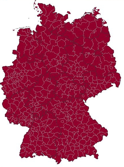Der Name Müller ist der häufigste Name in Deutschland und überall vertreten, wie man auf der Kartierung erkennen kann.