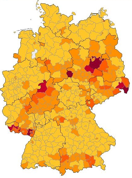 Der Name Paul tritt in Deutschland sehr häufig auf, wie man auf der Kartierung erkennen kann.