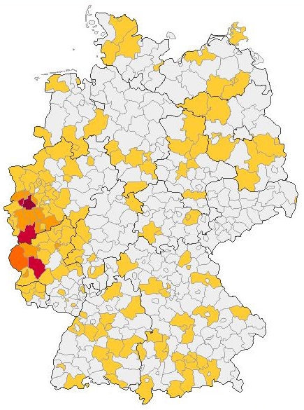 Der Name Pesch tritt in Deutschland häufig auf, wie man auf der Kartierung erkennen kann.
