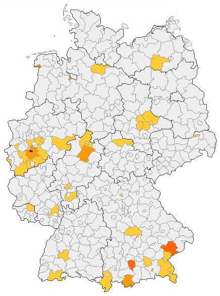Der Name Pilgram tritt in Deutschland häufig auf, wie man auf der Kartierung erkennen kann.