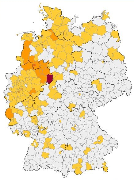 Der Name Pott tritt in Deutschland sehr häufig auf, wie man auf der Kartierung erkennen kann.