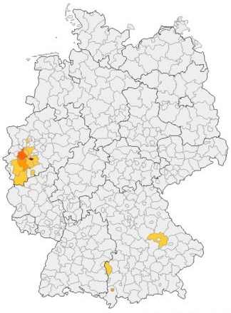 Der Name Richrath tritt in Deutschland nicht häufig auf, wie man auf der Kartierung erkennen kann.