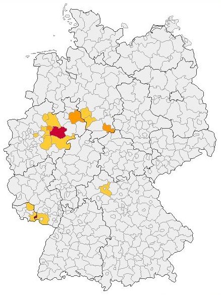 Der Name Rinsche tritt in Deutschland selten auf, wie man auf der Kartierung erkennen kann.