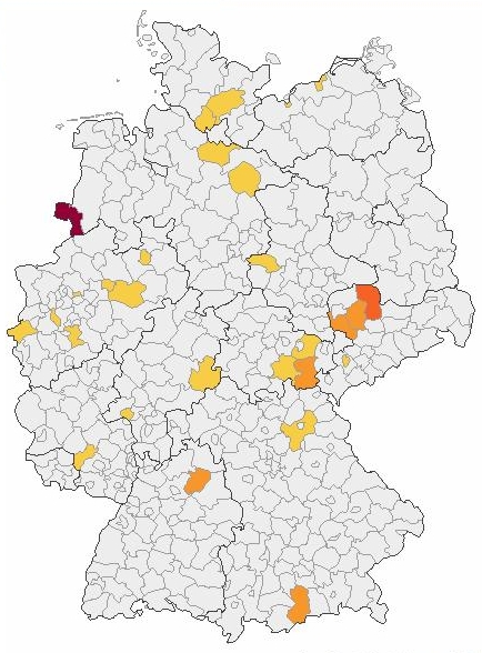Der Name Sablowski tritt in Deutschland eher selten auf, wie man auf der Kartierung erkennen kann.