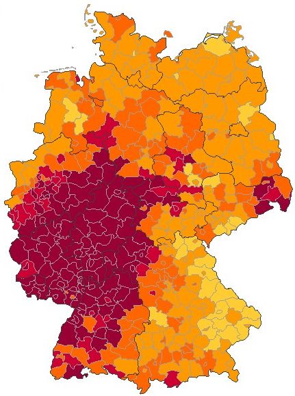 Der Name Schäfer tritt in Deutschland extrem häufig auf, wie man auf der Kartierung erkennen kann.