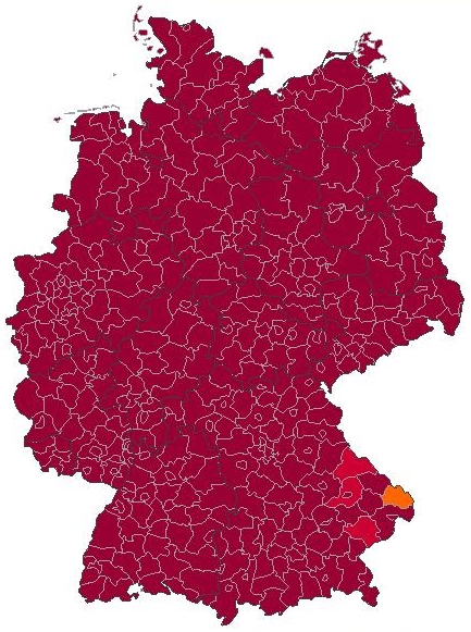Der Name Schmidt ist der zweithäufigste Name und taucht überall in Deutschland auf, wie man auf der Kartierung erkennen kann.
