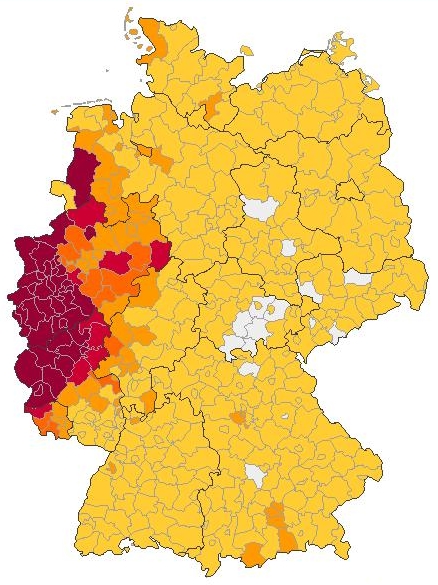 Der Name Schmitz tritt in Deutschland häufig auf, wie man auf der Kartierung erkennen kann.