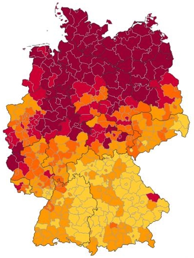 Der Name Moll Schröder in Deutschland sehr häufig auf, wie man auf der Kartierung erkennen kann.