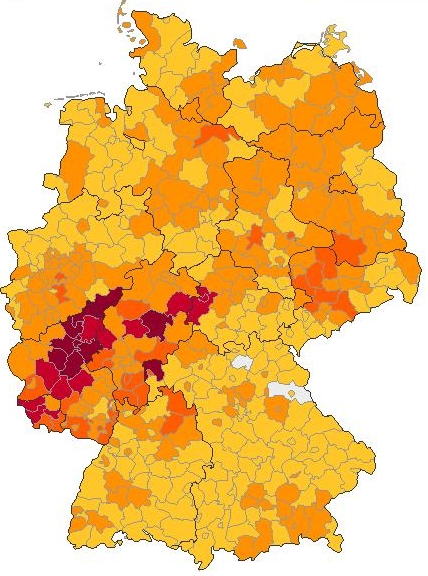 Der Name Stein tritt in Deutschland sehr häufig auf, wie man auf der Kartierung erkennen kann.