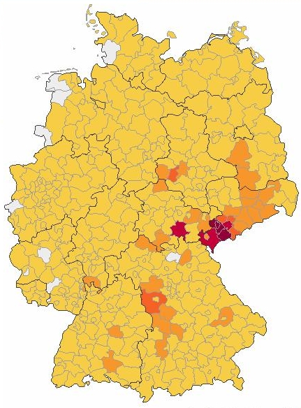 Der Name Unger tritt in Deutschland sehr häufig auf, wie man auf der Kartierung erkennen kann.