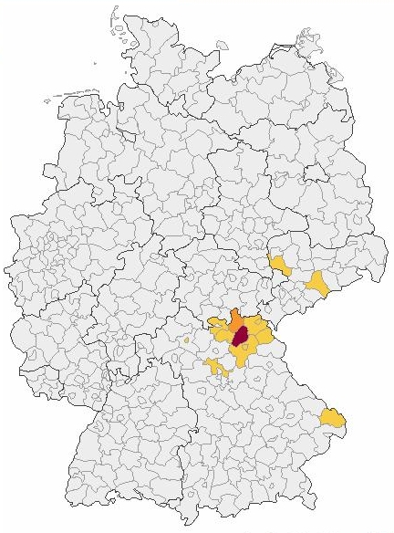 Der Name Vießmann tritt in Deutschland sehr selten auf, wie man auf der Kartierung erkennen kann.