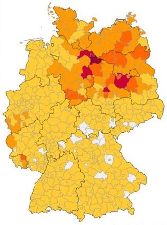 Der Name Wolter tritt in Deutschland sehr oft auf, wie man auf der Kartierung erkennen kann.